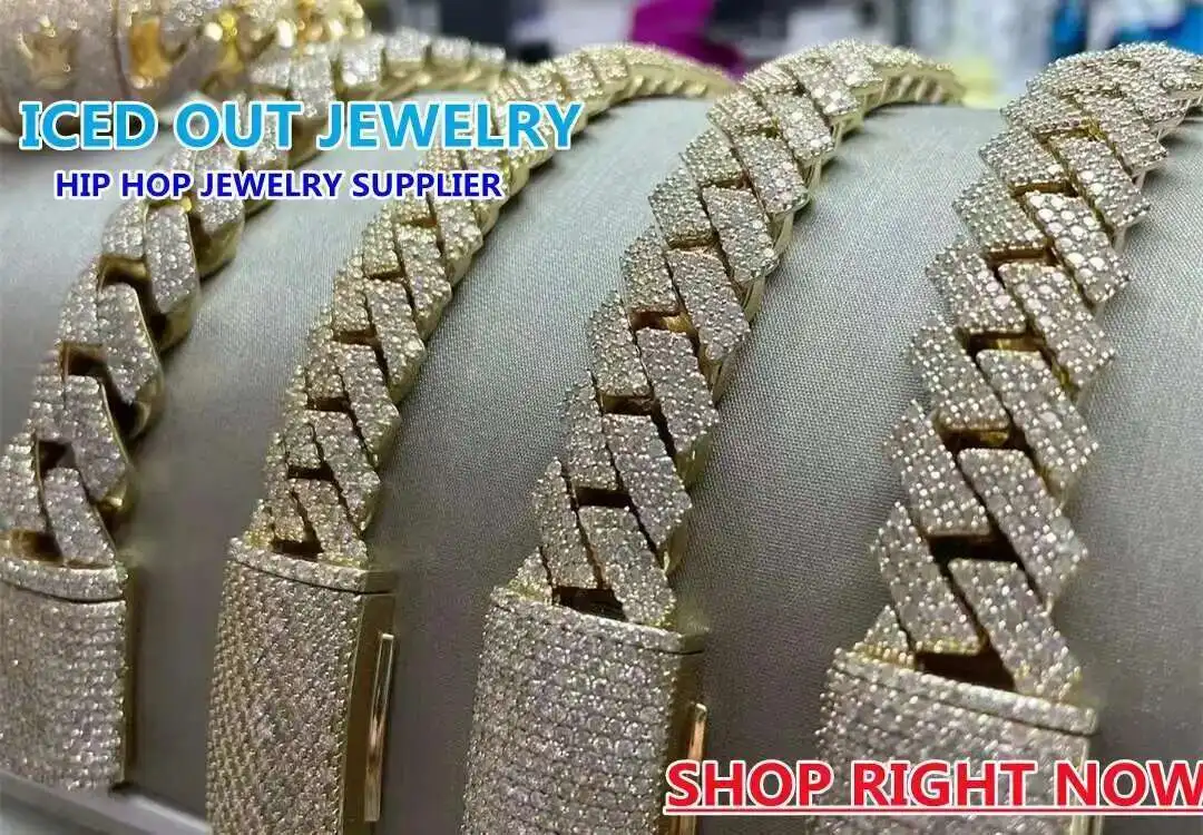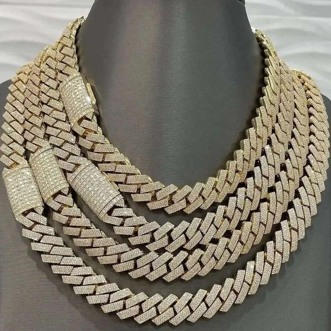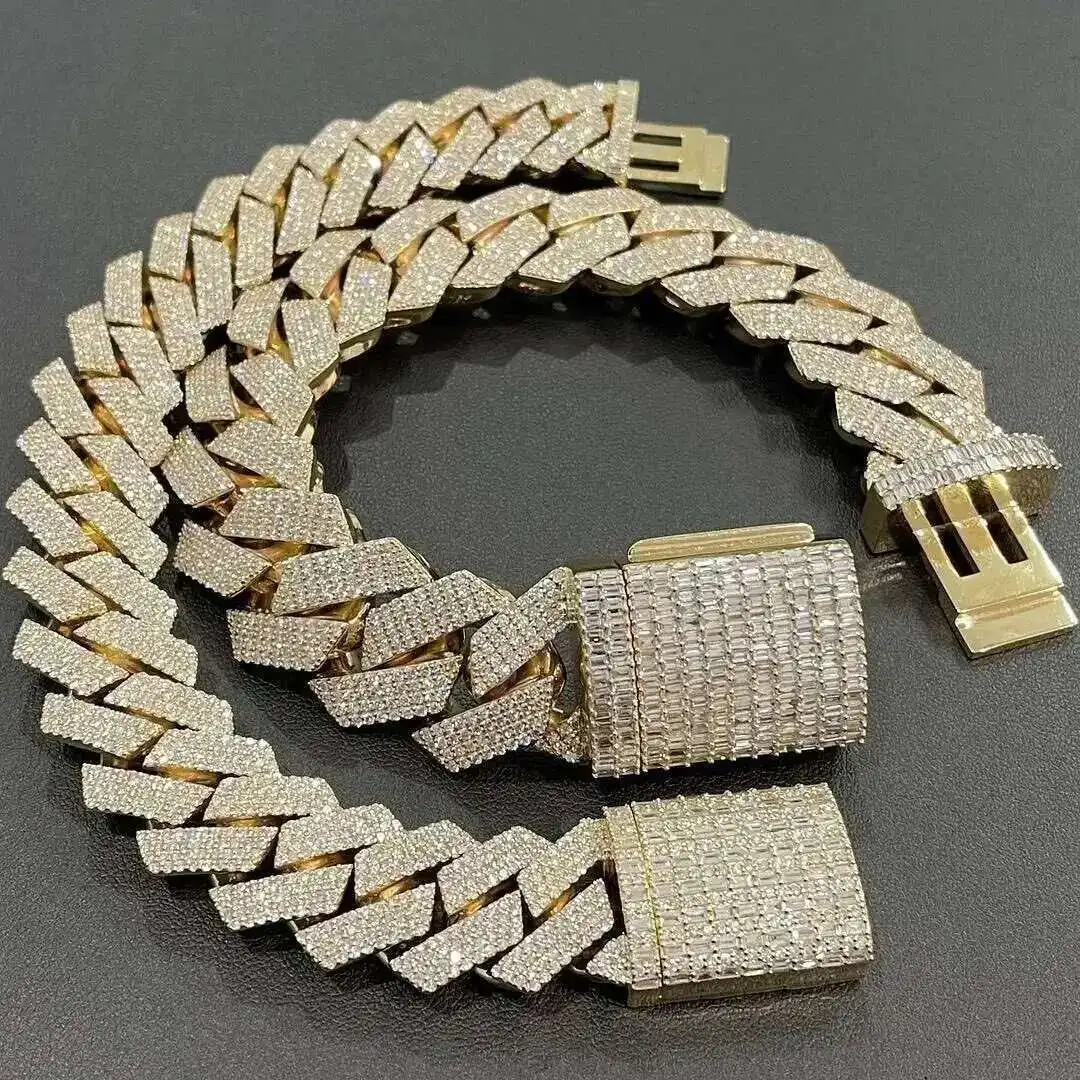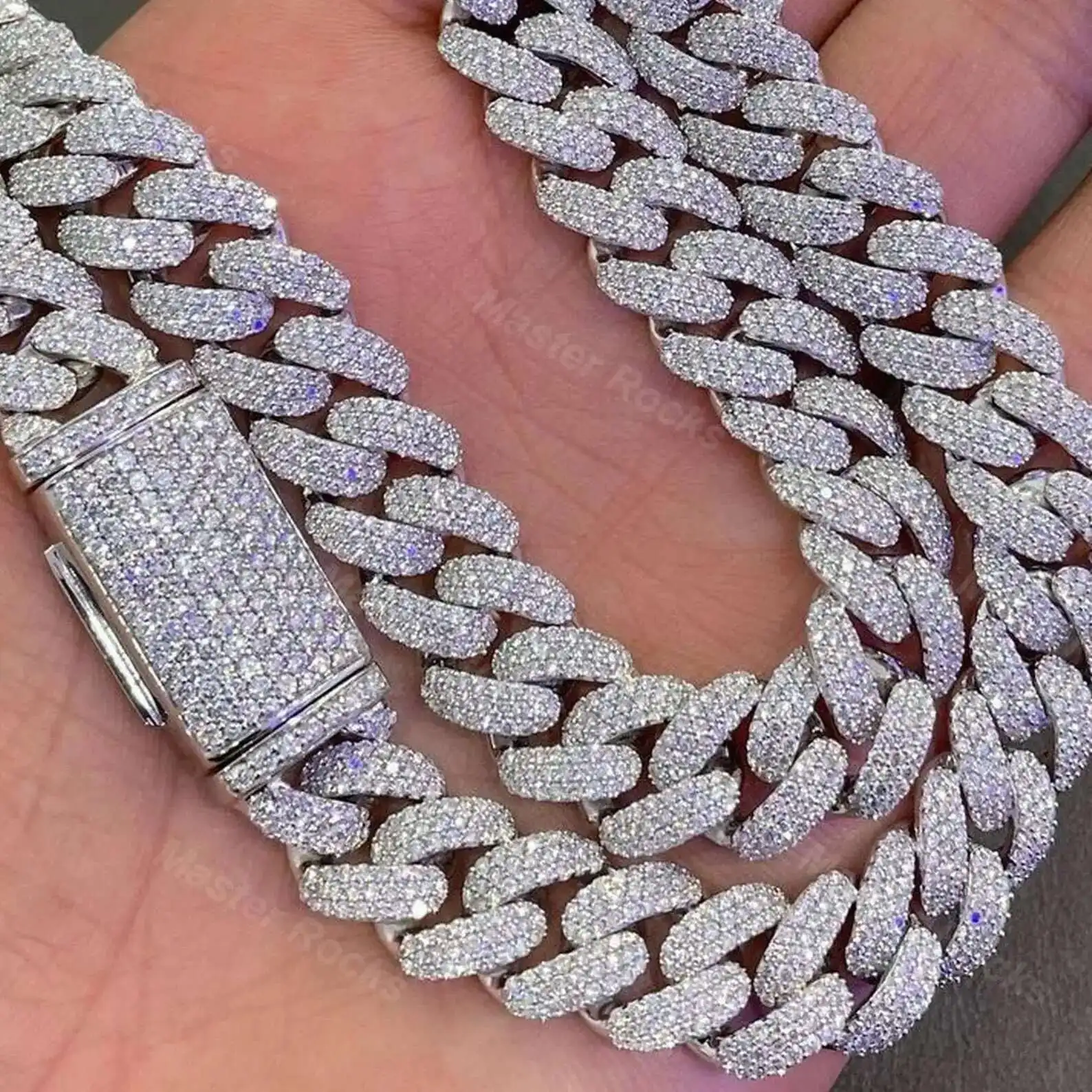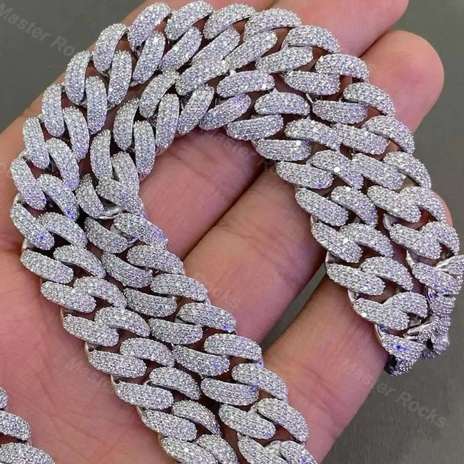 12MM 3rows Vvs Moissanite Studded Miami Cuban Link Chain 925 Sterling Silver Moissanite Iced out Cuban Chain