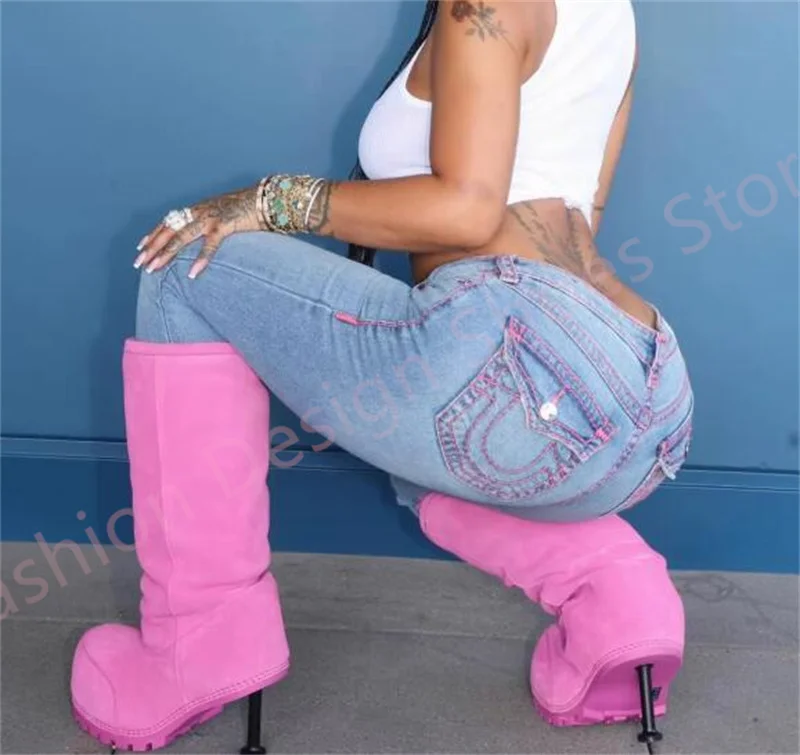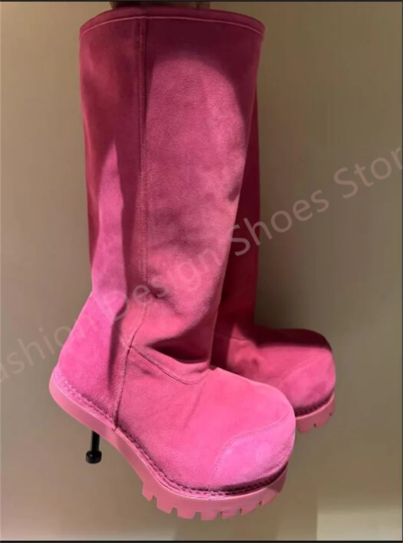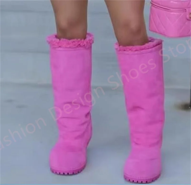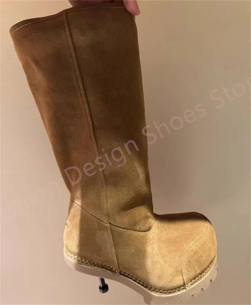 Long Plush Warm Winter Boots Fur For Women Or Men Metal Thin High Heels Knee High Height Increasing Shoes Woman Snow Boots 42 43