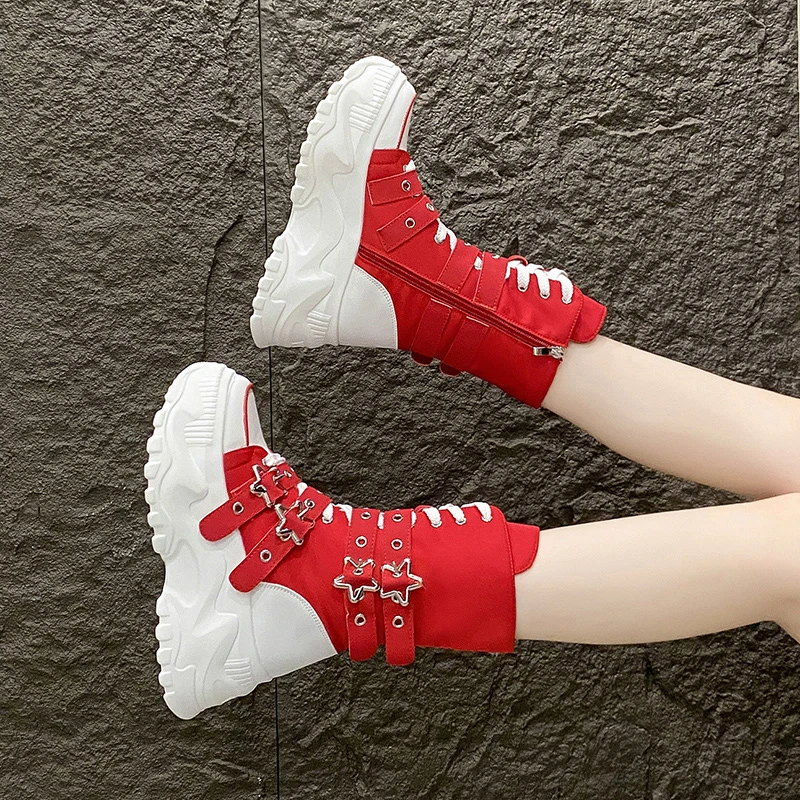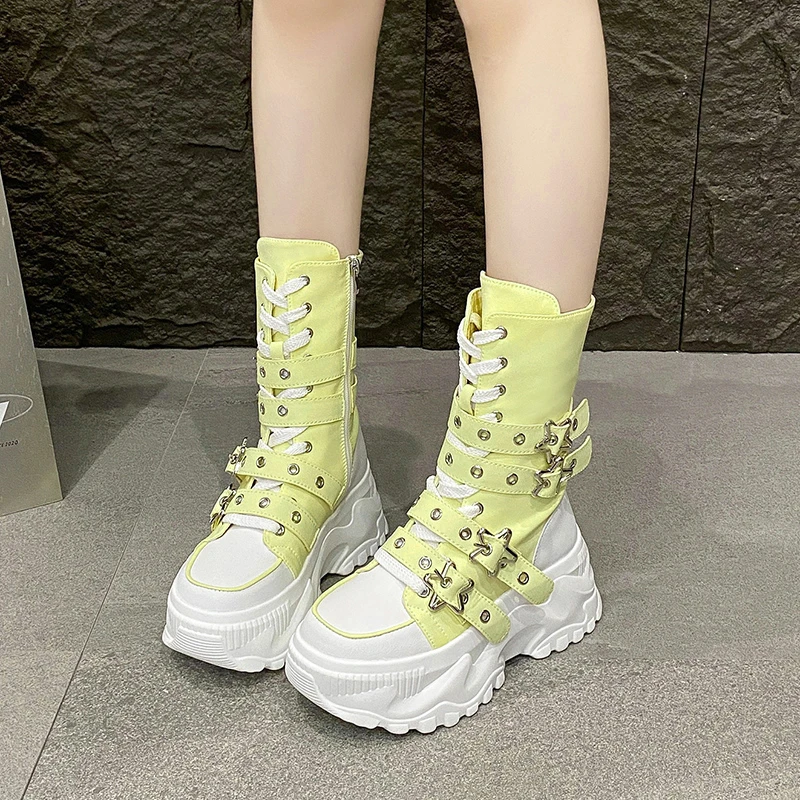 Single Boots Autumn New Round Toe Front Lace-Up Platform Non-Slip Mid-Tubular Boots Size Up To 42