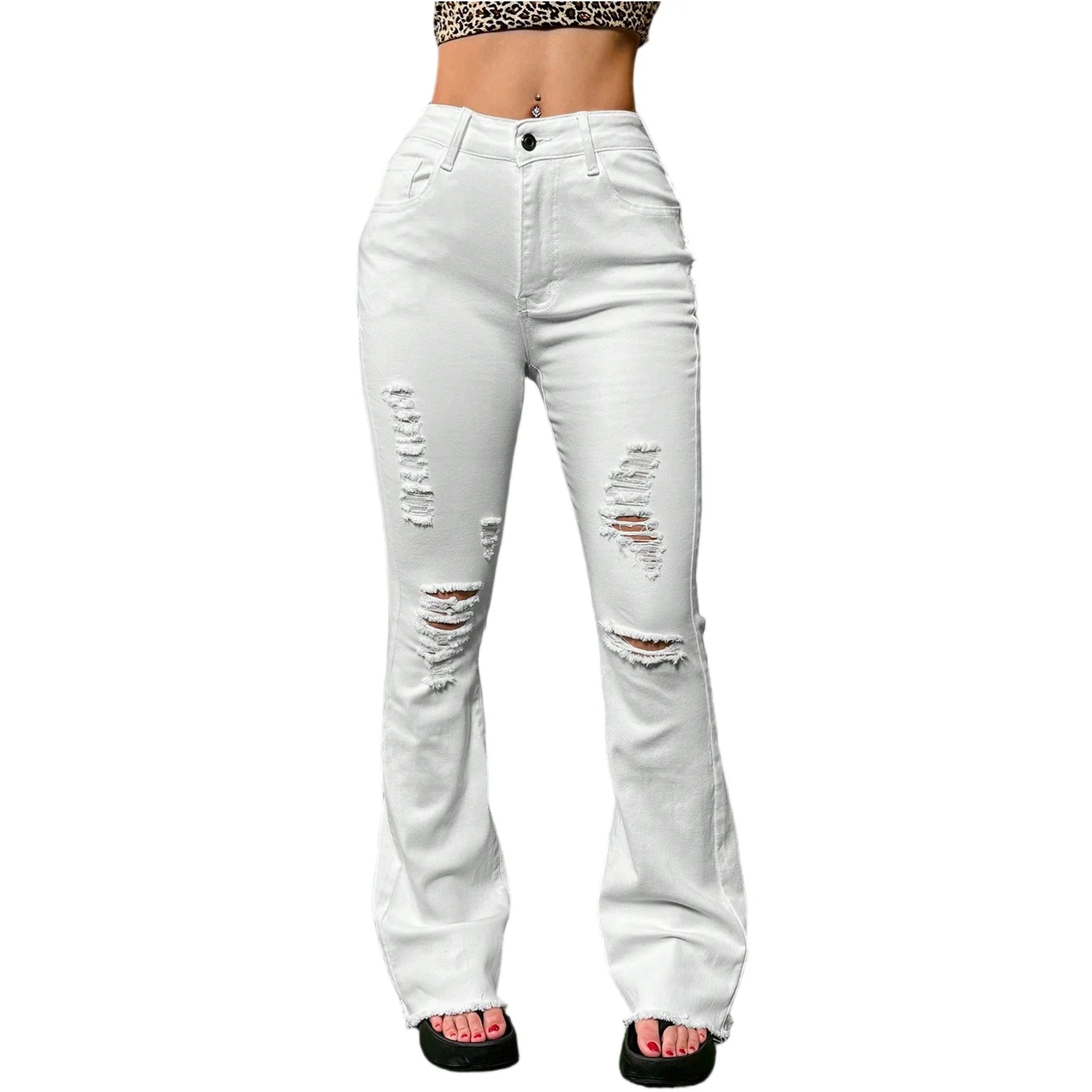 Women's jeans Retro niche ripped jeans High waisted hip-lifting sexy denim trousers with Pocket Solid color slim fit jeans pants