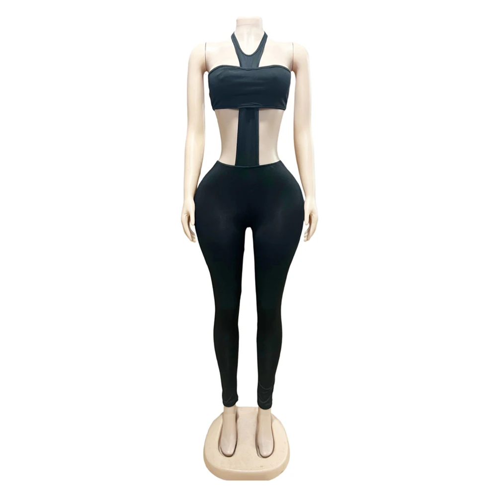- Design: Halter cross-front top with matching pants